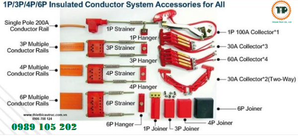 Ray điện an toàn cầu trục 1P, 3P, 4P, 6P và phụ kiện đi kèm tương ứng