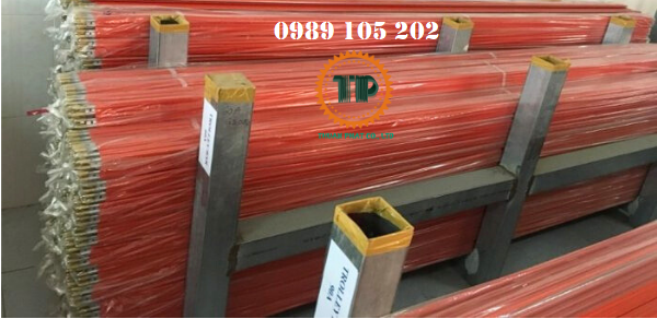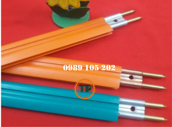 Ray điện cầu trục Hàn Quốc 60A, 90A, 200A, 300A, 500A chủ yếu là ray đơn, có cấu tạo gồm lõi đồng dày và sáng và vỏ bọc bên ngoài bằng nhựa màu cam và màu xanh.