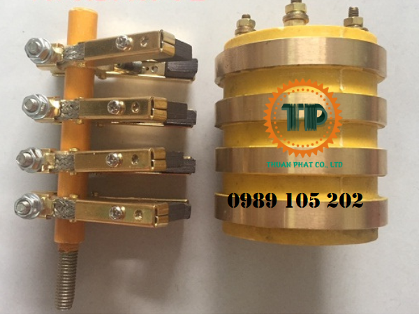 Cổ góp điện 4 vành đường kích 40 x 80 x 95 mm sử dụng bộ giá đỡ chổi than 8 x 12 x 32 mm có khả năng tiếp xúc và dẫn điện tốt, dễ dàng trong việc lắp đặt và thay thế.