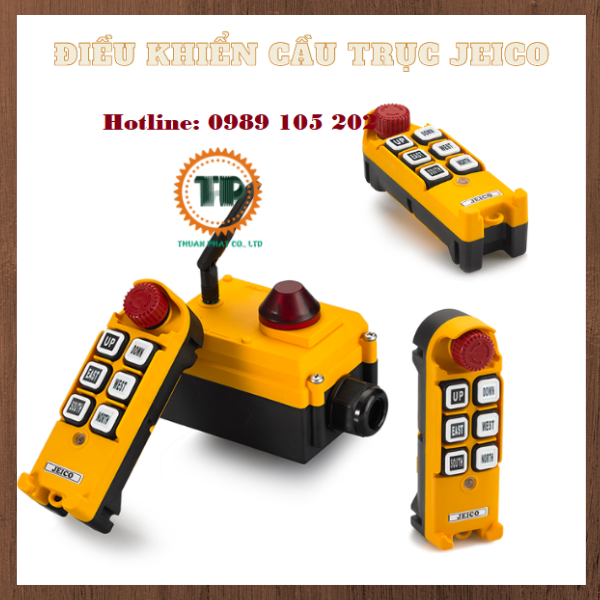 Điều khiển từ xa JEICO JREMO 6K bao gồm bộ thu sóng và bộ phát sóng dùng để điều khiển palang, cầu trục, xe cẩu, cửa cổng tự động.