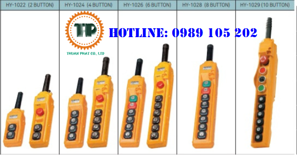 Tay bấm điều khiển cầu trục HY1022 là loại tay bấm được sử dụng rộng rãi nhất cho palang cầu trục. Tay bấm điều khiển cầu trục HY1022 kết nối với palang qua sợi dây cáp điều khiển.