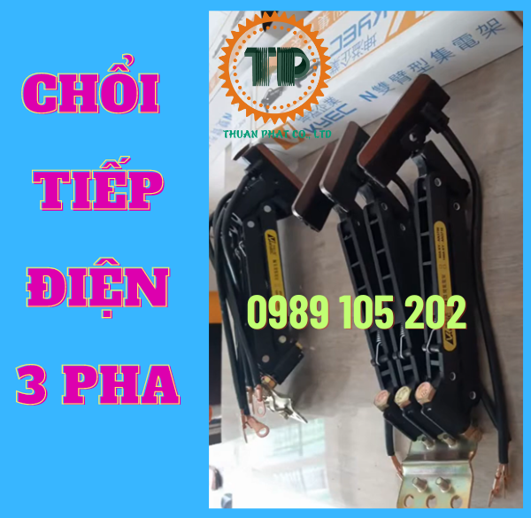 Chổi tiếp điện 3P60A là một thiết bị gồm có 3 nhánh và 3 lá than to và dày, có chức năng lấy điện nguồn trên ray điện cung cấp cho các động cơ trên cầu trục hoạt động (thông qua sự tiếp xúc giữa các lá than của chổi tiếp điện với các rãnh đồng trên ray điện).