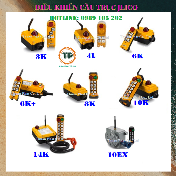 Công ty thiết bị cầu trục Thuận Phát là đại lý cung cấp tay bấm điều khiển từ xa cầu trục Telecrane, Juuko, Jeico, Henjel, Ego,… tư vấn lắp đặt điều khiển từ xa theo nhu cầu sử dụng thực tế. Thuận Phát chúng tôi có các loại tay bấm điều khiển từ xa cầu trục Telecrane, Juuko, Jeico, Henjel, Ego phổ biến như 2 nút, 4 nút, 6 nút, 8 nút, 10 nút, 12 nút, 1 cấp tốc độ và 2 cấp tốc độ chuyên dùng cầu trục, cổng trục.