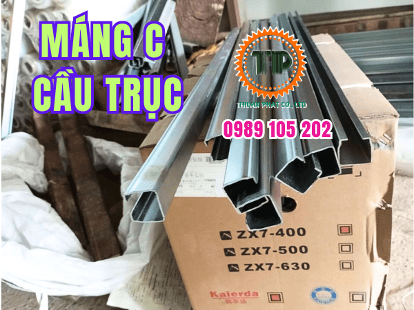 Máng C cầu trục có hình dáng rỗng hình chữ C, kích thước chuẩn dài 3 mét/thanh, độ dày 1.6 mm, có khe hở để trượt cáp dẹp 12 mm và có các phụ kiện đi kèm như con trượt cáp, kẹp treo, con lăn dẫn hướng, kẹp cố định, dây cáp dẹp. Thay vì không sử dụng hệ ray điện an toàn, đối với những hệ cầu trục nhỏ, ngắn ta thường sử dụng hệ máng C để trượt và cung cấp điện cho hệ cầu trục, cho palang hay động cơ di chuyển.