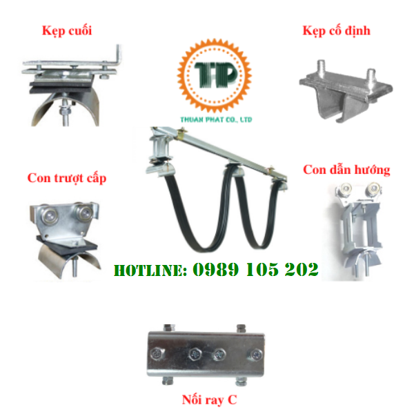 Kẹp cuối ray C: dùng để giữ cố định dây cáp dẹp